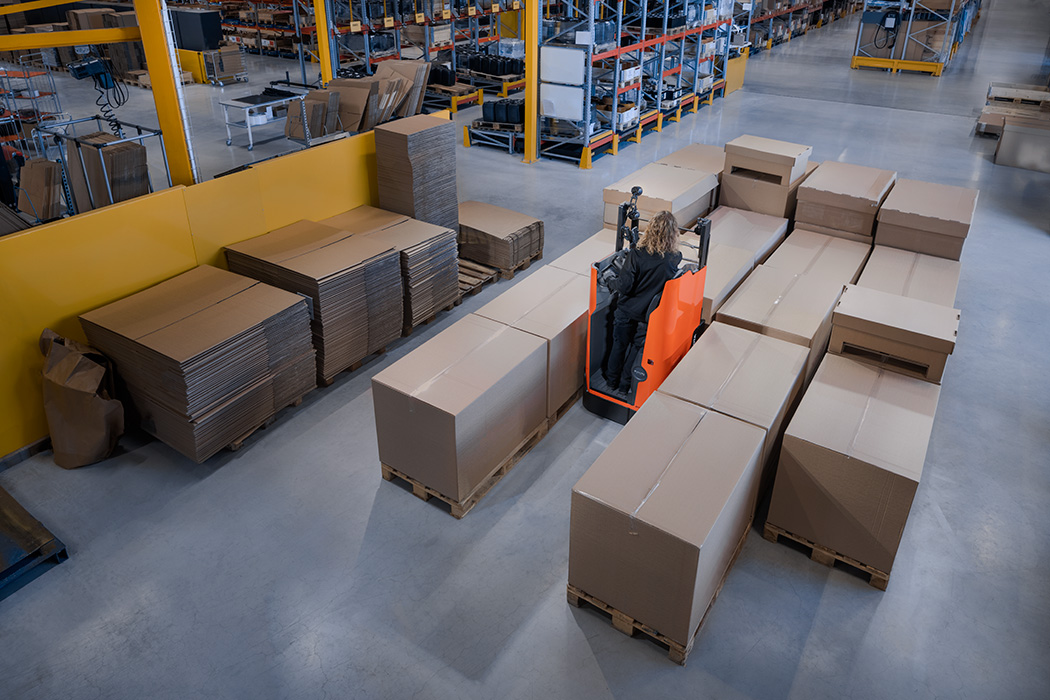 Nízkozdvižný vozík se stojícím/polosedícím řidičem pro přejezdy na dlouhé vzdálenosti